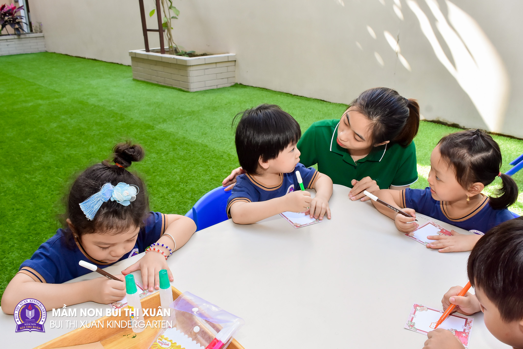 Hoạt động này không chỉ tạo ra niềm vui mà còn giúp các con học hỏi, sáng tạo và phát triển năng khiếu thẩm mĩ, kỹ năng làm việc nhóm của mình.