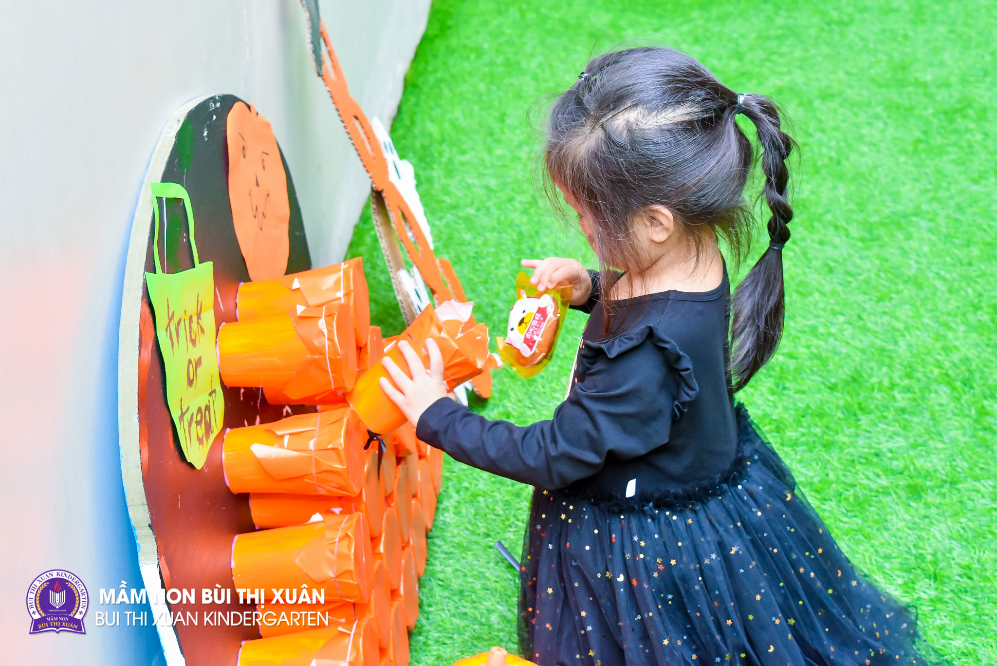 Không gian huyền bí, những bộ trang phục đầy màu sắc, kiểu dáng ngộ nghĩnh đáng yêu… không khí Lễ hội ở Mầm non Bùi Thị Xuân diễn ra vô cùng sôi nổi. Các bạn nhỏ đã có những trải nghiệm tuyệt vời khi cùng nhau chào đón mùa Halloween thật nhiều ý nghĩa.