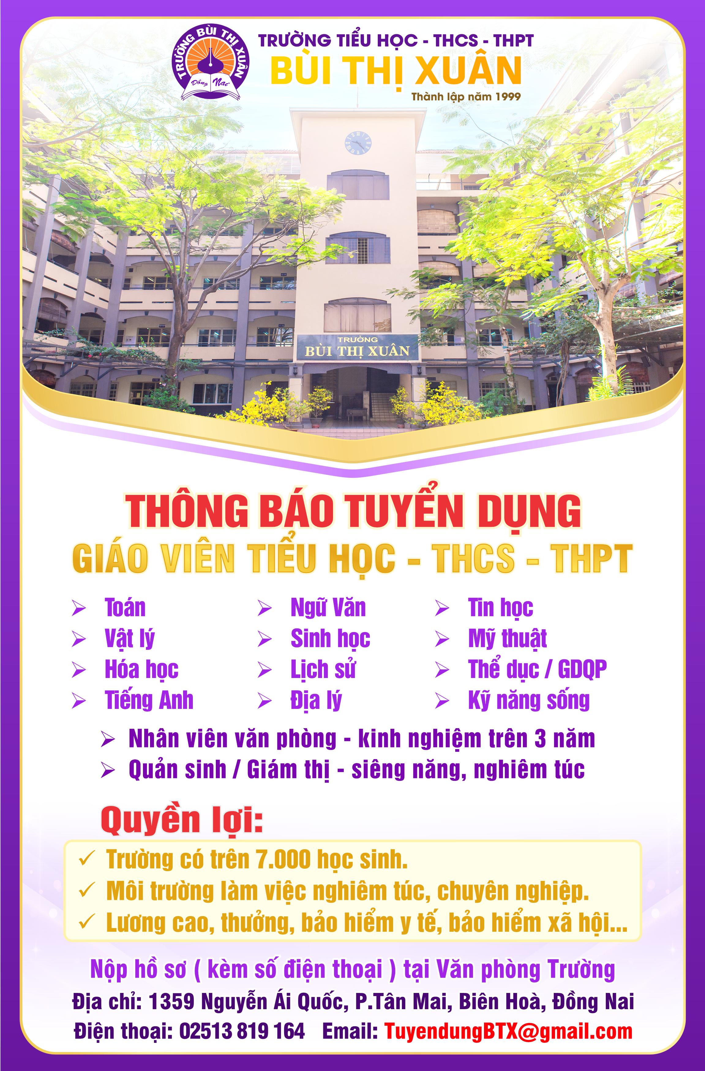 Trường Bùi Thị Xuân thông báo tuyển dụng: