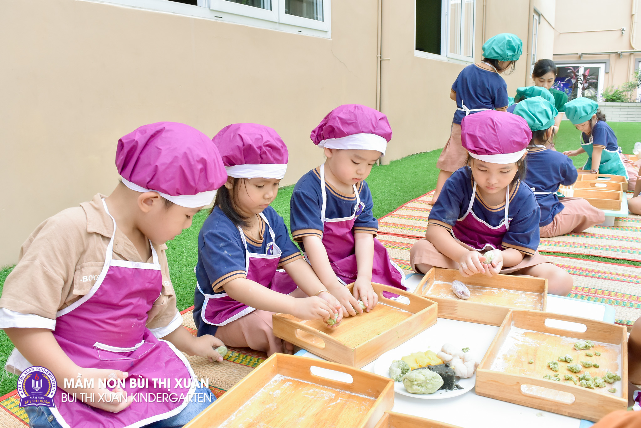 Trung thu năm nay các bạn mầm non Bùi Thị Xuân được trải nghiệm mới: Làm bánh Trung thu, làm lồng đèn… Với sự hỗ trợ từ các cô giáo, út nhỏ Bùi Thị Xuân đã trổ tài khéo léo làm ra những chiếc bánh nhỏ xinh xắn, chiếc lồng đèn đầy đủ sắc màu. Sản phẩm của các “út” tuy không được hoàn hảo nhưng đó là món quà Trung thu ý nghĩa tình cảm ấm áp mà các “út” dành tặng cho ba mẹ và gia đình.